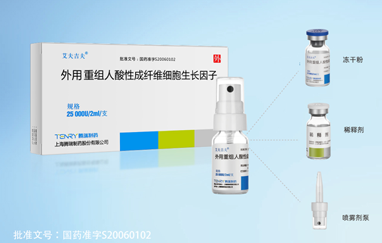 國家一類生物新藥“外用重組人酸性成纖維細(xì)胞生長(zhǎng)因子”商品名為艾夫吉夫,可以有效促進(jìn)傷口愈合,是中國原研、全球領(lǐng)先上市的國家醫(yī)保乙類產(chǎn)品。艾夫吉夫(AFGF)曾獲得原研專利、國家技術(shù)發(fā)明二等獎(jiǎng)、國家一類新藥、中華醫(yī)學(xué)會(huì)科技一等獎(jiǎng)等榮譽(yù)。